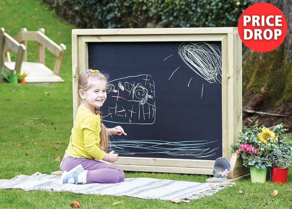 Inspire creativity and expression with this double-sided, freestanding chalkboard panel.